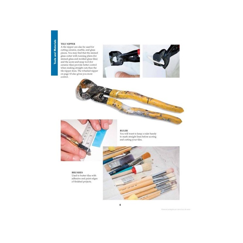 Las instrucciones claras y con imágenes, guiaran al principiante a través de los fundamentos de mosaicos, de las instrucciones para la planificación de un diseño, corte y colocación de azulejos, la mezcla y la aplicación de la lechada, para terminar sus creaciones. Incluye fotos a todo color paso a paso para la creación de 20 proyectos.