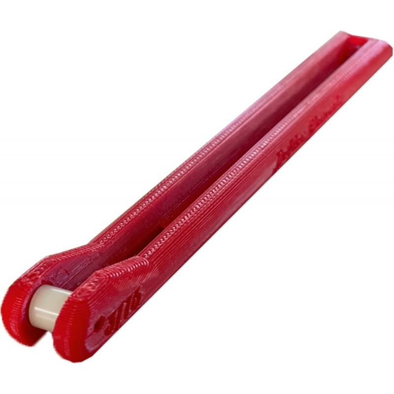 5️⃣ Empuja el foil detrás de la rueda guía y voltea la herramienta para verificar que la cinta quede alineada sobre el rodamiento.