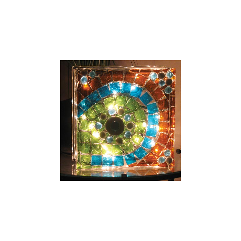 Este bloque de vidrio con perforación es versátil y ofrece un sinfín de posibilidades creativas de artesanía. La superficie lisa de vidrio transparente es ideal para mosaicos, pintura, grabado y otros efectos decorativos. Añada luces claras o de color en el interior de Kraftyblok para iluminar su proyecto. Con un tamaño aproximado de 7-1/2" x 7-1/2" x 3-1/4" (19x19x8cm) esta superficie ofrece mucho espacio para crear cualquier detalle único. Una abertura tapada convierte el KraftyBlok en una de las muchas aplicaciones prácticas en el hogar.