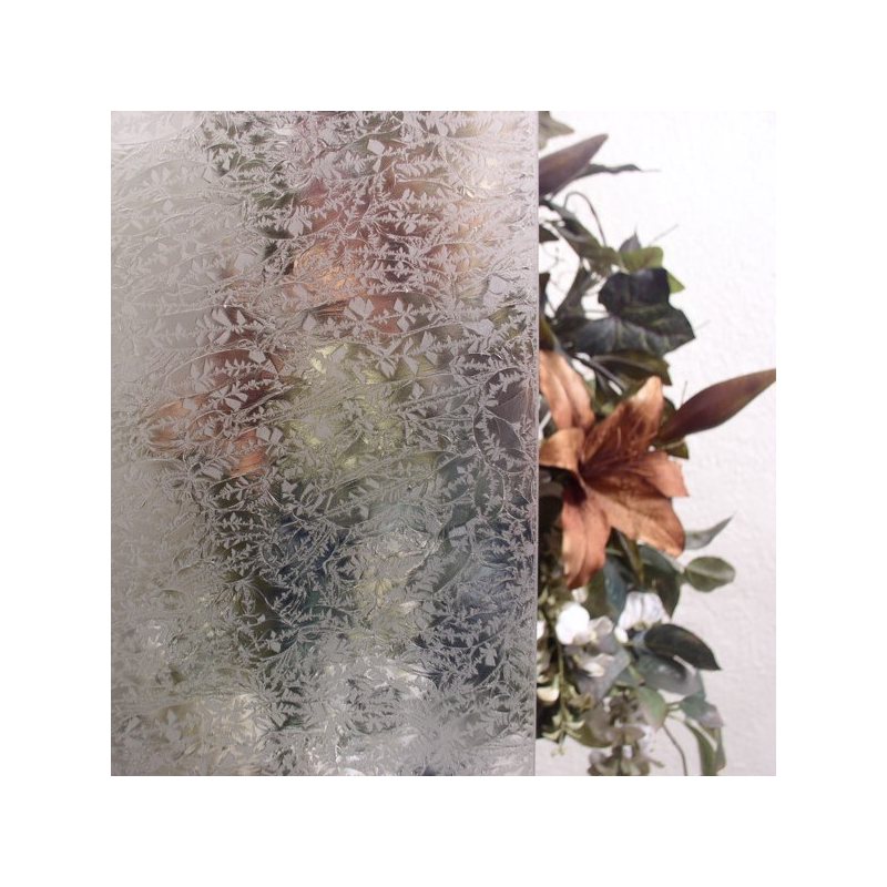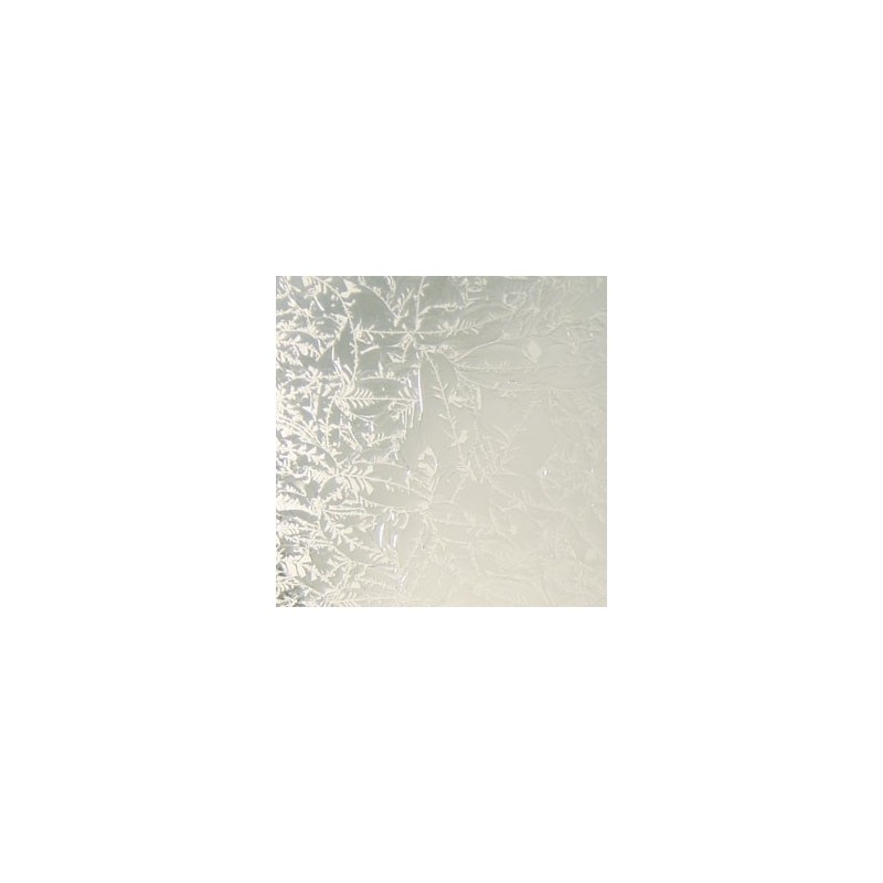 Una hoja de vidrio transparente es cubierta con pegamento y se hornea lentamente hasta que el pegamento se despega. A medida que se despega, se van creando virutas en la superficie del vidrio, creando una textura similar a las heladas en un cristal de ventana. Este vidrio es excelente y una opción económica para fondos, y se puede complementar maravillosamente con vidrio biselado.