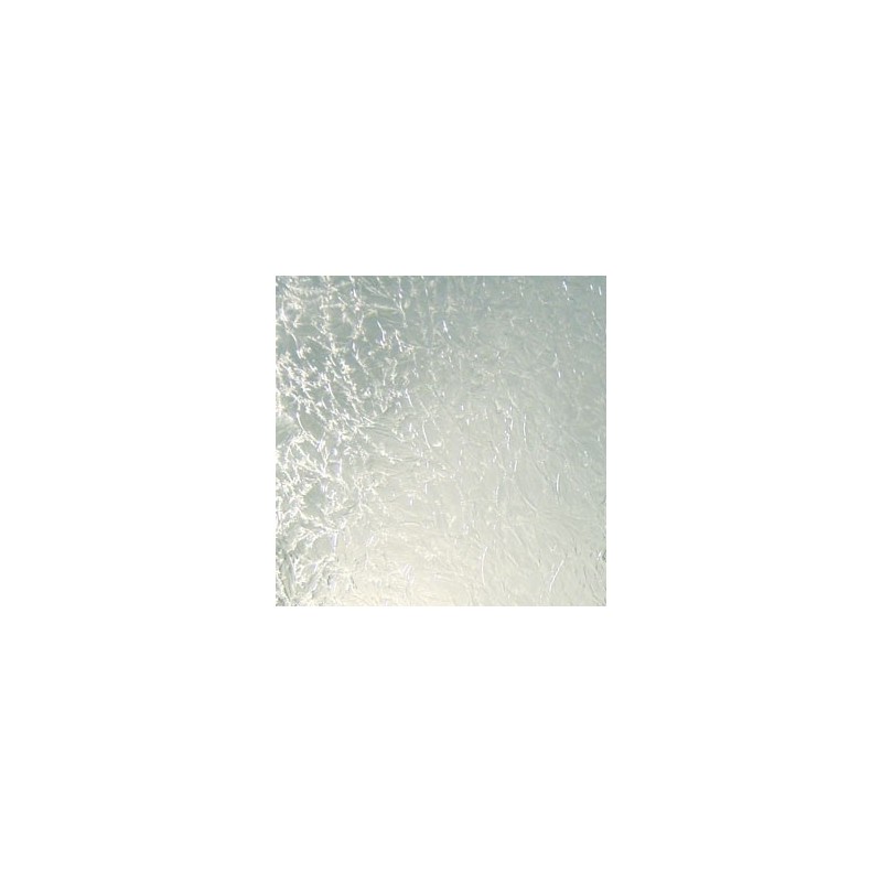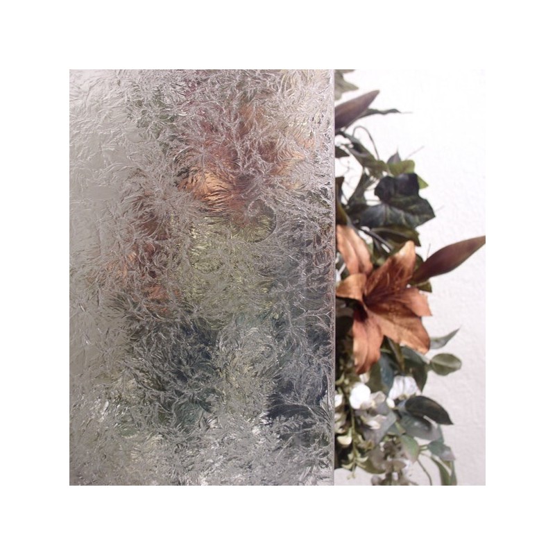 Una hoja de vidrio transparente es cubierta con pegamento y se hornea lentamente hasta que el pegamento se despega. A medida que se despega, se van creando virutas en la superficie del vidrio, creando una textura similar a las heladas en un cristal de ventana. Este vidrio es excelente y una opción económica para fondos, y se puede complementar maravillosamente con vidrio biselado.
