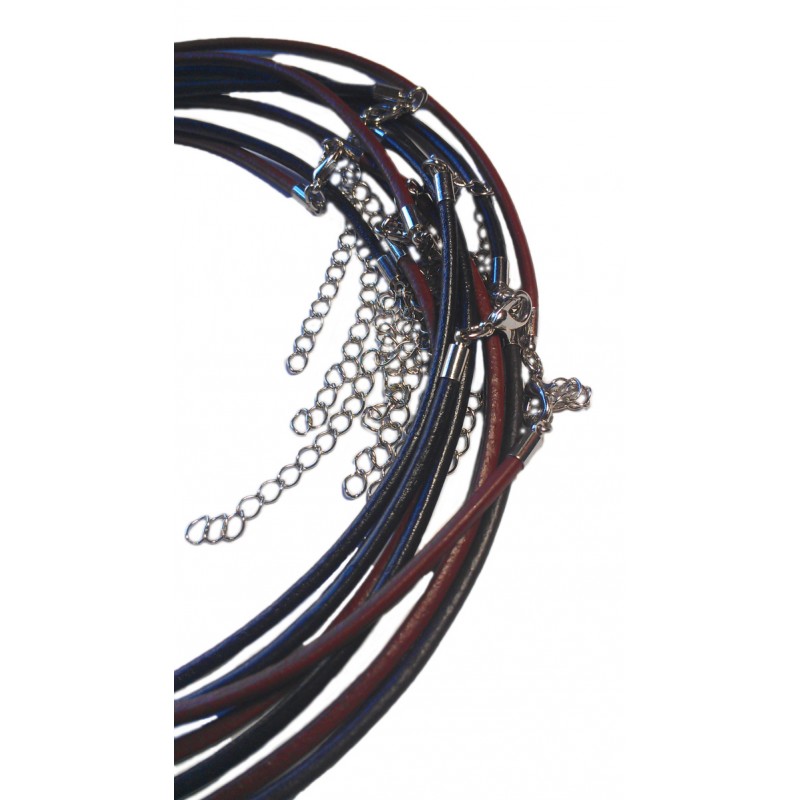 Paquete con 10 collares de cuero de 18” (46cm) con extensor de 3” (7.5cm) para joyería. Incluye 4 collares en color negro, 4 en café y 4 en café oscuro.