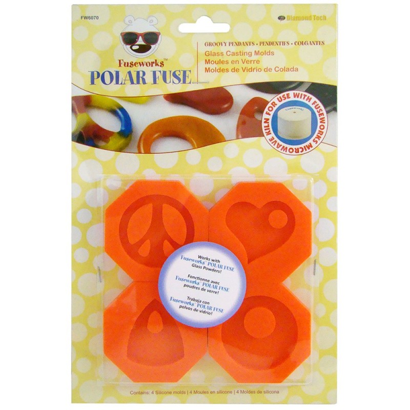 Use fritas Polar Fuse para crear arte personalizada en 3D con el Horno para Microondas Fuseworks con un horno regular. Cuatro moldes de 2-1/2" cada uno. Cuenta con 4 diseños divertidos y originales que incluyen un signo de la paz, un corazón, un círculo y una forma de diamante.
