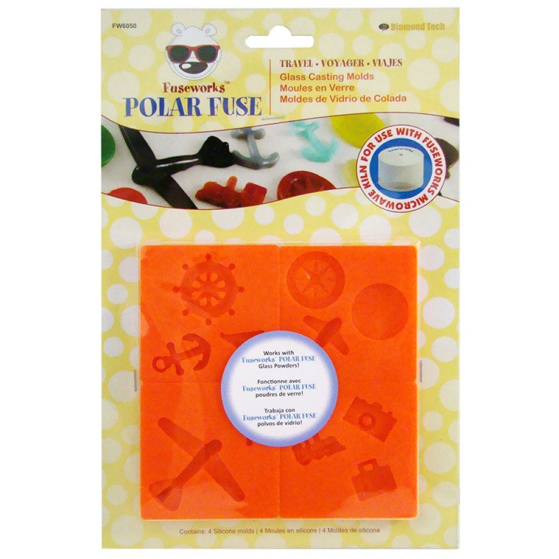 Use fritas Polar Fuse para crear arte personalizada en 3D con el Horno para Microondas Fuseworks con un horno regular. Cuatro moldes de 2-1/2" cada uno. Cuenta con 4 diseños divertidos y originales que incluyen un un tren, maletas, aviones y mucho más.