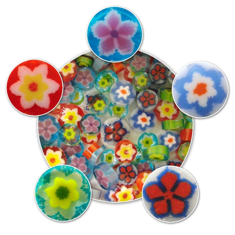 Estas coloridas rebanadas de vidrio con dibujos pueden añadirse un estallido de emoción a cualquier proyecto de vitrofusión o de soplete o bien, para sus proyectos de vitromosaico. El surtido contiene Millefiori transparente con detalles opalescentes en una variedad de brillantes colores. Paquete con 1/2 oz (14.2 gramos).
